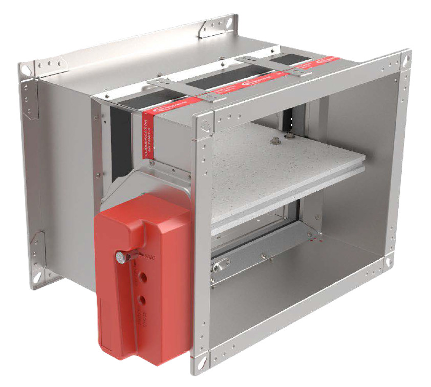 Die eckige oder quadratische Brandschutzklappe FD schützt Lüftungsanlagen zuverlässig. Sie verhindert die Ausbreitung von Feuer und Rauch und erfüllt alle relevanten europäischen Prüf- und Klassifizierungsnormen.