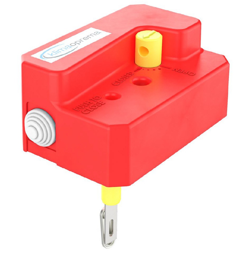 Das Gehäuse aus verzinktem Stahlblech, Klappenblatt aus Kalziumsilikat, einem Absperrmechanismus außerhalb des Luftstroms und einer manuellen, elektromagnetischen oder motorischen Auslöseeinrichtung / Antriebseinheit.