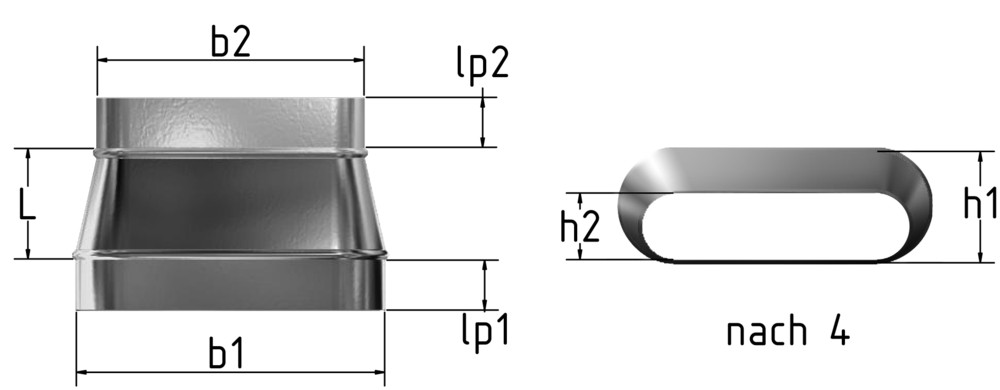 m+a Reduzierung UAO oval-oval, asym., unten gerade, b1xh1=680x350 auf b2xh2=790x300mm, L=225mm